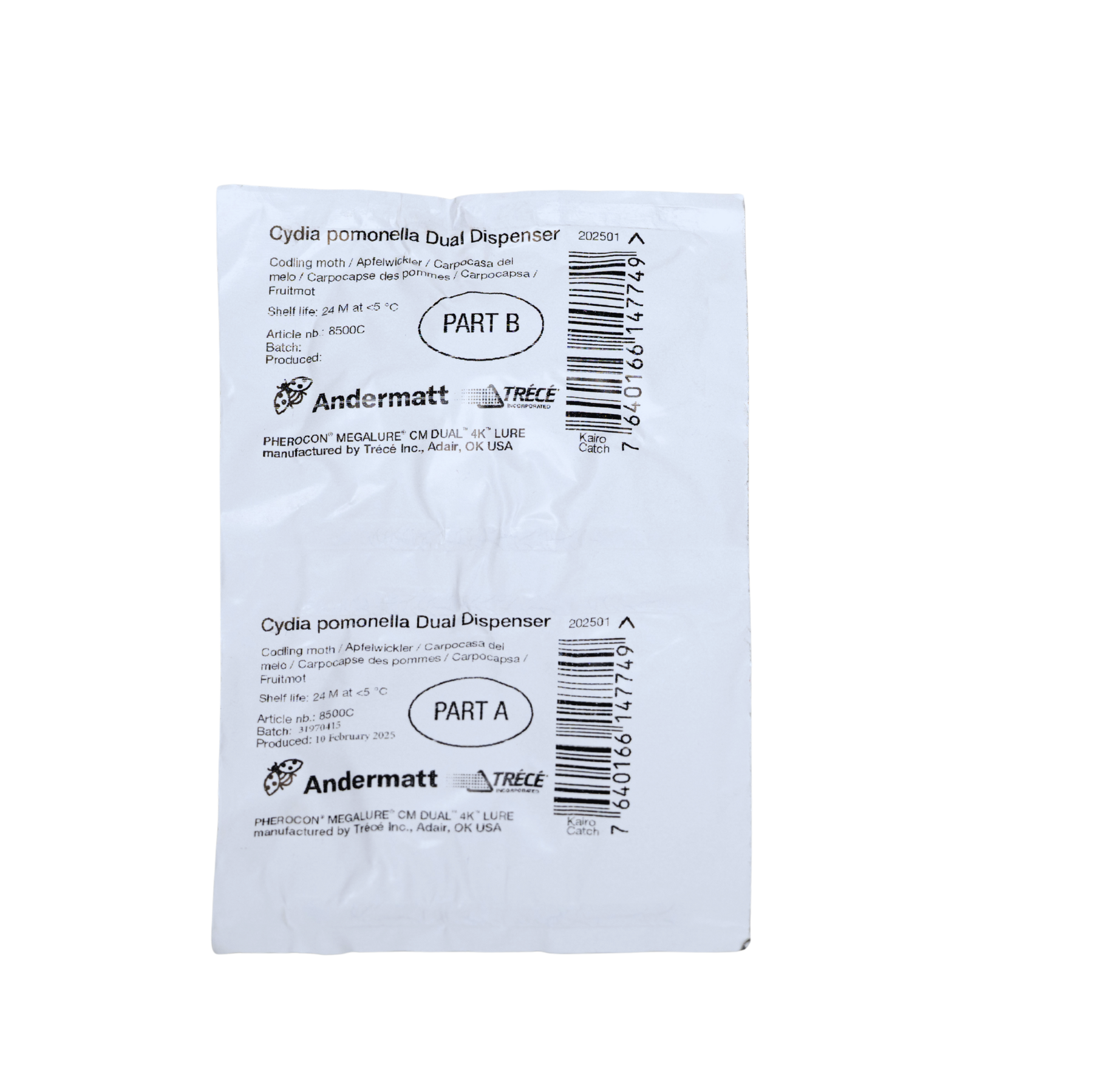 Door het uithangen van Delta-vallen met Kairo-Catch krijg je als teler een veel beter beeld van de fruitmotdruk in je percelen, waardoor het ook makkelijker wordt om ondersteunende behandelingen (bijvoorbeeld met Madex Max of Madex Top) op het juiste moment toe te passen. Kairo-Catch vormt dus een belangrijke eerste pijler voor een effectieve bestrijding van de fruitmot, ook in percelen met feromoonverwarring.